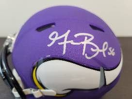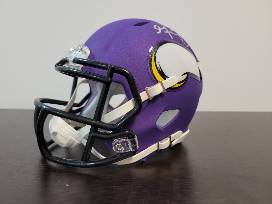 Skol Vikings! Autographed Minnesota Vikings Garrett Bradbury mini helmet. Bradbury was the highest-drafted center in Vikings history and only 1st rounder. He was the 1st player in Vikings history to start 16 games at center as a rookie and only the 2nd player in franchise history to start every regular-season game at center as a rookie. In 2000, Bradbury started every game at center as Vikings notched a 3,000-yard passer, 1,000-yard rusher and 1,000-yard receiver in the same season in 2020. It's the 1st time the Vikings have done so in back-to-back seasons (2019-20) since 1997-98.