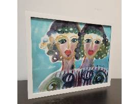 "Simply Beside Myself" a 12x12 piece by local artist Barbara Lee Goldberg. From the artist: "My name is Barbara Lee Goldberg, my signature of Barbara Lee denotes my childhood spirit. I am a great-grandmother and grandmother who has recovered my youth and carefreeness through my paint brush. Painting is my passion that I discovered when I was 70. Whatever I lack in technical skills, I make up in enthusiasm, my art contains happiness and mostly color, color, color! I am a juried artist and have had my paintings displayed occasionally. Life motivates me to put that brush-full of acrylic paint across the canvas in free flow. Painting is my meditation, my way of blessing the universe."