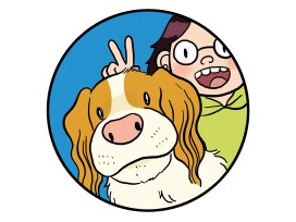 Image: A designed illustration from Remy Lai's graphic novel Pawcasso and a headshot of Remy Lai.