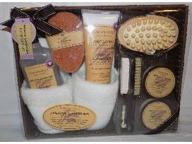- BASKET WITH PLUSH SLIPPERS AND SPA FOOT CARE ITEMS