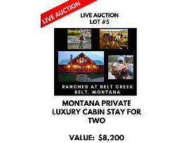 4 NIGHT/ 5 DAY GETAWAY FOR TWO (2) AT THE MEMBERS ONLY MONTANA SPORTING CLUB AT BELT CREEK!