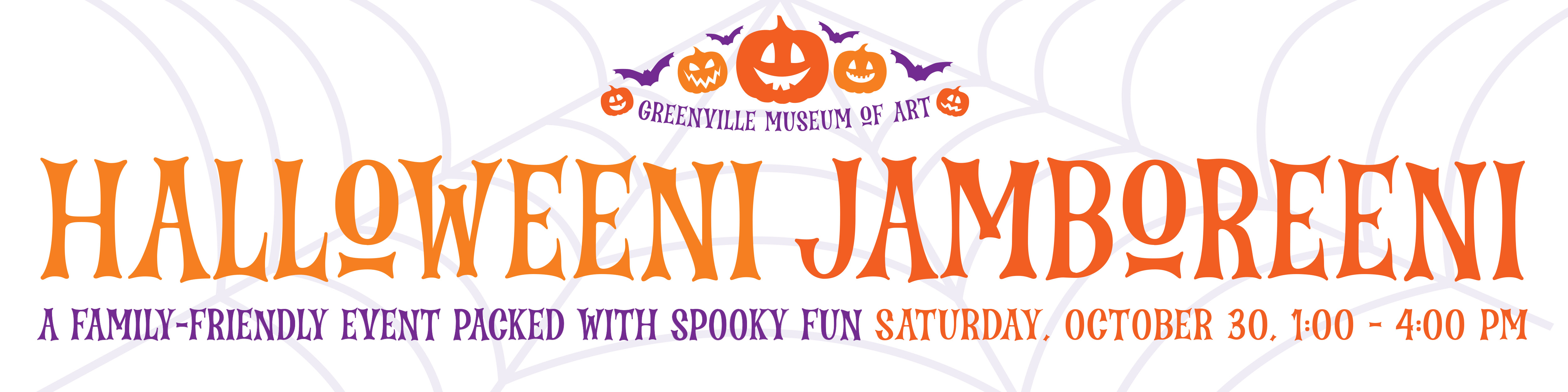 Join us at the Greenville Museum of Art as we host our first ever Halloweeni Jamboreeni! This event is a day full of fun for all ages and will be held indoors/outdoors with various stations packed full of arts and crafts, games, movies, interactive entertainment, Trunk or Treat, and more! Everyone is encouraged to arrive in costume however it is not required. Parents - You enter for FREE! Tickets are $10 per child for all access to each activity.
