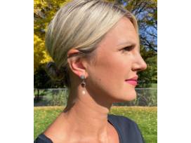 These gorgeous stud earrings will dazzle and complement your favorite party outfit! The three part dangle earrings boast clear crystals, oval shaped garnet gemstones and soft white pearls.
