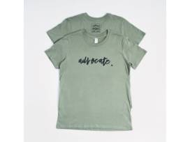 - Ladies "Advocate." Crew: Army green, large, black text on front reads "Advocate", reverse "Little Rascals with a Cause"