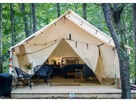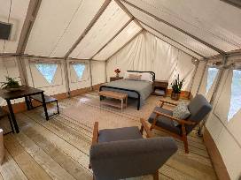 - 10 canvas cabins provide lovely sleeping for two in each.