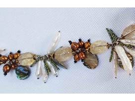 20 Inch Necklace With Elongated Fresh Water Pearls and Semi-Precious Stones in Copper, Turquoise and Metallic Blue Color Tones.
