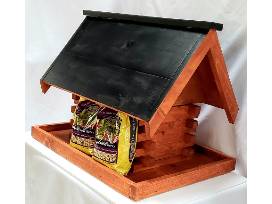 Large Handmade Wooden Log Cabin Bird Feeder