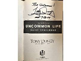 The "One Year Uncommon Life Daily Challenge" by Author Tony Dungy is a New York Times bestseller. The book is signed by Coach Dungy with the inscription "Be Uncommon! Tony Dungy Matt 7: 13-14"