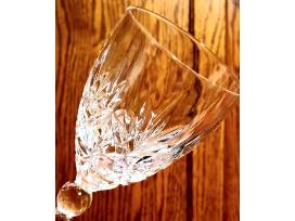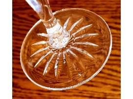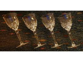Four Crystal Wine Glasses with delicate cuts along a gently tapered bowl; holds 8 oz. They ring to the note of second-octave-high "G". Hand wash.