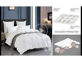 - Goose Down Experience: The 56oz goose down comforter is evenly filled into the interior of the comforter, bringing even warmth and dry breathing to sleep. The soft down and air embrace like clouds, making the bed fluffy and soft and full of elasticity. It always provides the most luxurious sleep quality whether it is fall or winter.