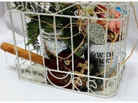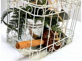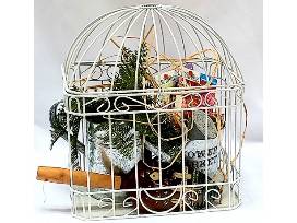 This rustic white wire Birdcage is a great touch for primitive decor year round.