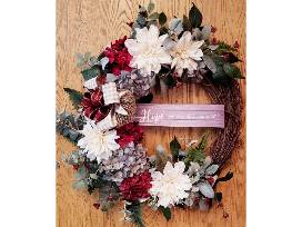 This beautiful, original one of a kind summer wreath will beautifully adorn numerous places in your home, including a welcoming to your front door, over the fireplace mantle, or any of the many walls in your house rooms. The passage states: "Hope makes all thing work."