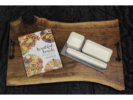 Let your guests marvel at this beautifully large, custom made charcuterie board! Coupled with this classic 5 piece appetizer set and the new recipes from The Baker Mama, your next get-together will be a hit. This package includes a $50 Festival gift card.
