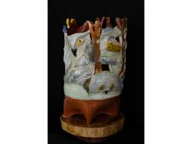 Marie-Luce Van Asten was born in Belgium and lived there for 40 years. In High School, she decided to take Arts Classes as her main focus and then graduated as an Art teacher in 1983 in Belgium. When Luce arrived in the US in 2001, she found Chastain Arts Center in Atlanta where she took wheel classes for 2 years, then switched to hand building. About that period, Luce got a full-time job at the Atlanta International School, where she taught the French language in kindergarten and elementary for 15 years. During recent summers, Luce has been attending workshops with many different Artists where she has been developing and fine tuning her style. Luce took classes to improve her figurative sculpture techniques and discovered different surface decorations. Furthermore, with the help of her husband, Dominicus, she is integrating some of her ceramic pieces with wood to tell a story.