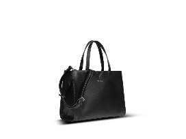 Mid-sized satchel with eye catching top cutout detail. Removable wristlet gives you two bags in one!