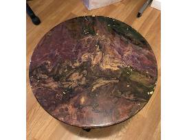 An original Wood & Metal End Table with brilliant gold, purple, green, teal and black paint with a gold glow in the dark pigment and covered with a gold glitter epoxy.