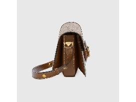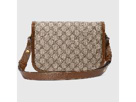 Introduced for Cruise 2020, the Gucci Horsebit 1955 bag is recreated from an archival design. With the same lines and forms first introduced over six decades ago, the accessory unifies the original details with a modern spirit, highlighting the Horsebit. Part of Gucci's genetic code, the double ring and bar design has been established as one of the most distinctive elements among the House symbols borrowed from the equestrian world. Presented on a small flap shoulder bag, the hardware is paired with the House's monogram fabric and completed with a special mechanism that adjusts the length of the shoulder strap so it can be carried on one shoulder or cross body. Pieces with versatile ways to wear and style embrace each person who is part of the House's individual spirit.