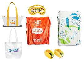 Taco Bell Loungewear For (2) Includes: (2) Taco Bell Robes (S/M & L/XL), (2) Taco Bell Blankets, Taco Bell Tote, Taco Bell Duffel, (2) Taco Bell Slippers, and (2) Taco Bell Sleep Eye Masks.