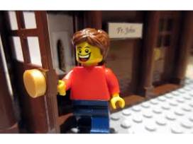 This set features 185 genuine LEGO bricks, three modified LEGO bricks (Father John's cassock and surplice and the name plates are custom printed by Domestic Church Supply Company), a purple stole and a three-piece light brick.