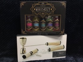 - 3 Piece Bone Handle Stainless Steel Bar Set by Viski that includes long handled jigger designed to portion out syrups, liquors, liqueurs, bottle opener, wine opener