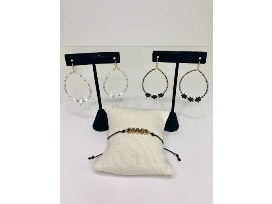 Pair your outfit with some killer white lightening bolt or black star hoop earrings from Monkee's of the West End. Top it all off with a "vibes" simple, dainty black string bracelet from Kitsch.