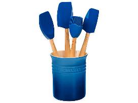 The Le Creuset Craft Series 5-Piece Silicone Utensil Set offers the complete Craft series, perfect for outfitting a new kitchen. Includes the classic Le Creuset stoneware crock as well as silicone spatulas, spoon, and baster with wooden handles.