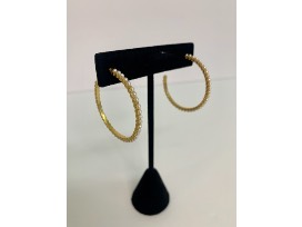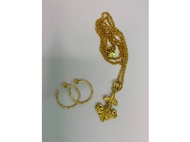 Juliet 24K gold plated, pearl medium hoops (1 1/2'') and a long 24K gold plated pendant necklace (38'' long).