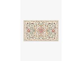 Reminiscent of an English garden, our Suzani Coral Rug is perfect for your home's traditional, country cottage, or shabby chic interior. Elegant and rustic, this green and orange floral rug features a bordered design with delicately drawn flower petals and vines in coral, yellow, and sage green on muslin. Rug colors may vary slightly according to your device and the lighting in your space.