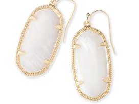 Custom oval stones in a thin gold metallic frame and our Elle Gold Earrings in white mother-of-pearl are classics sure to spark conversation. Loved for their versatility, these drop earrings pair perfectly with whatever you wear. The Elle Gold Earrings are a jewelry box essential.