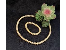 1An absolute classic set! Nothing adds elegance like pearls, and this set of bracelet and necklace are perfect to give sophistication to any outfit. With a gold hint to the pearls, the set has a modern twist and is perfectly suited to those who prefer warm-toned jewelry!