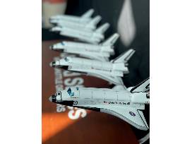 Executive Series Display 1/144 Scale NASA Space Shuttle Orbiter Fleet Of (5) Five Challenger, Columbia, Atlantis, Discovery And Endeavour Solid Composite ABS Plastic Desk Top Display Model Collection With Wood And Metal Stand