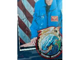 Signed Jasmin Moghbeli NASA Portrait framed with Mission patch- measures 12.5" x 15.5" with black frame and navy blue mat