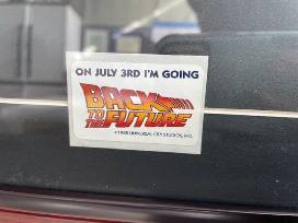 Color photo of the Twin Pines mall scene where Marty is filming Doc Brown and his trusted furry friend Einstein use the Delorean time machine fir the first time.