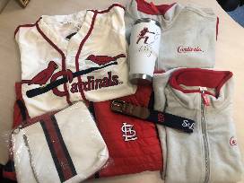 2 Tickets for Cardinals vs. the Milwaukee Brewers game on 30 September 2021. Seats are bleacher area. Section 193, Row 7, seats 3 and 4. Great view from the outfield. This is a 12:15 start time! Also included are these highly coveted giveaways. 1 Saturday home jersey (XL), 2 grey fleece vests (XL), 1 red puffy vest (XL), purse, belt and Yadi tumbler.