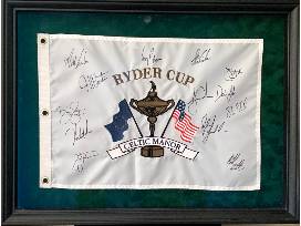 EVERY member of the 2010 USA Ryder Cup Team played at Celtic Manor signed this framed flag: