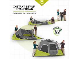 - CORE 6-person Instant Cabin Tent - Pre-assembled frame for easy 60 second setup. H20 Block Technology and adjustable ground vent. Center height 72".