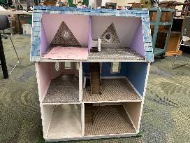 This is a beautiful, fully homemade dollhouse with 3 floors, real carpeting and a beautiful design in and out for you or someone that is still a child at heart.