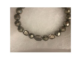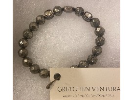 1A gorgeous pavé diamond hexagon bracelet with double-sided, rose-cut pavé diamond beads interspersed with faceted pyrite beads, handmade by local jeweler Gretchen Ventura.