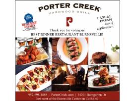 Enjoy a $25 gift card to Porter Creek Hardwood Grill in Burnsville, MN.