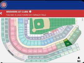 2 tickets to Cubs vs. Brewers on Tuesday, May 31, 2022 at 7:05 pm