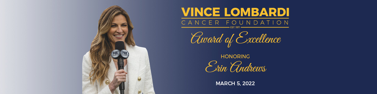 NFL Reporter and TV personality Erin Andrews will be honored on March 5, 2022 by the Vince Lombardi Cancer Foundation during the 31st Annual Award of Excellence. Andrews will be recognized for her efforts to support people impacted by cancer, including spreading awareness about cervical cancer. Andrews was diagnosed with cervical cancer in 2016 and is now cancer free. Her story, optimism, and strength have inspired many.