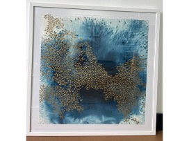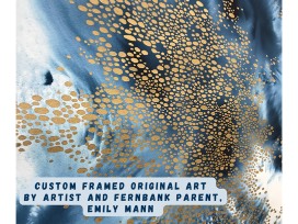 Original indigo pigment flows with metallic gold detailing on watercolor paper-