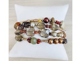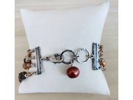 Triple strand bracelet with antiqued sterling silver, pearls, citrine smoky quartz and carnelian. Hand made
