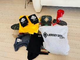 And swag that includes a sweatshirt, 2 t shirts, towel, coozie, etc.