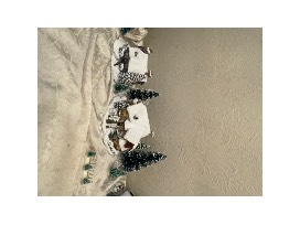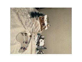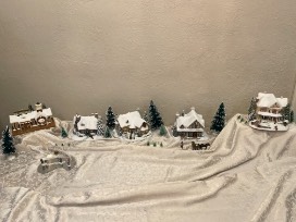 Christmas Village Buildings include the Victorian Homestead, Santa's Workshop, Yuletide Bakery, Village Christmas Station, Light of Hope Church, St. Nicholas Christmas Shop, Village Tea Room, From the Heart Gifts, Skating at the Pond, and Holiday Bed and Breakfast. Other scenes and accessories include Pond, Toy Shop, Elves Baking, Sleigh, two Parade floats with Reindeer, Hockey Pond, many Christmas trees, fences, animals, Christmas gate, Fireplace, Whistle Stop Junction figures, and an electrical kit with extra bulbs.