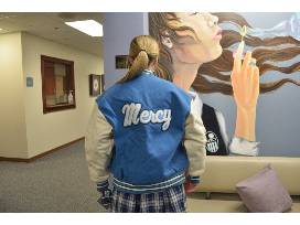 Mercy athletes or students will love to stay warm in this beautiful Mercy letter jacket.