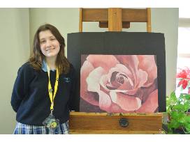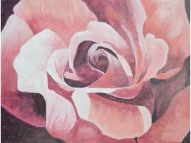 Close up painting of a pink rose. Painting measures 12x16 and is done with acrylics. Artist: Kaydence Reddington '23