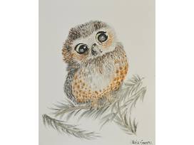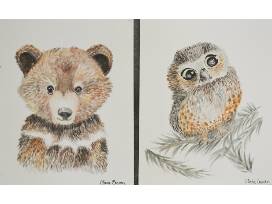 Watercolor painting of a bear cub & owl. Two (2) 8x10 paintings done in Watercolor & pen. Artist: Olivia Craven '22