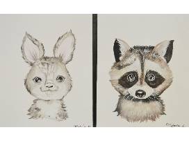 Watercolor painting of a bunny & racoon. Two (2) 8x10 paintings done in Watercolor & pen. Artist: Melanie Sherrard '22