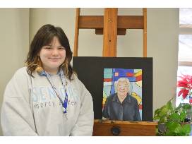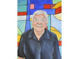 A tribute painting of our beloved Sister Corinne. Painting measures 12x16 and is done with acrylics. Artist: Caroline Leonard '22